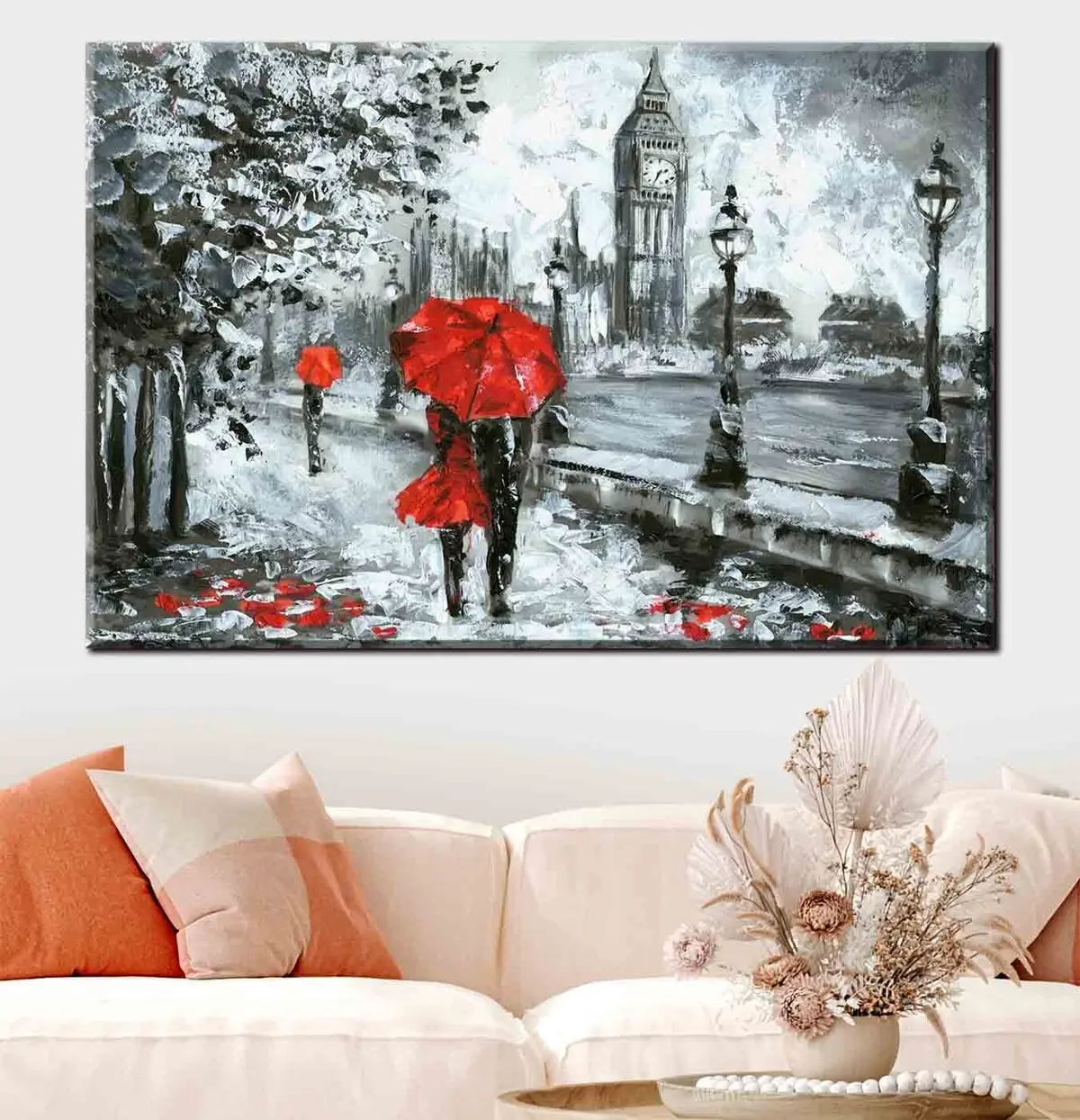 Vászonkép Olajfestmény, londoni utcakép fekete-fehérben Nr s34614