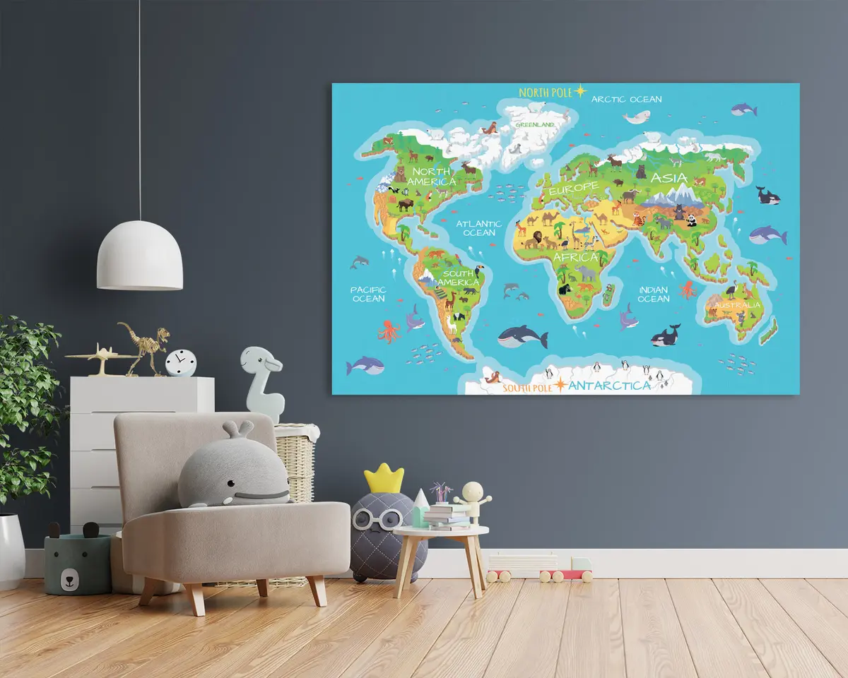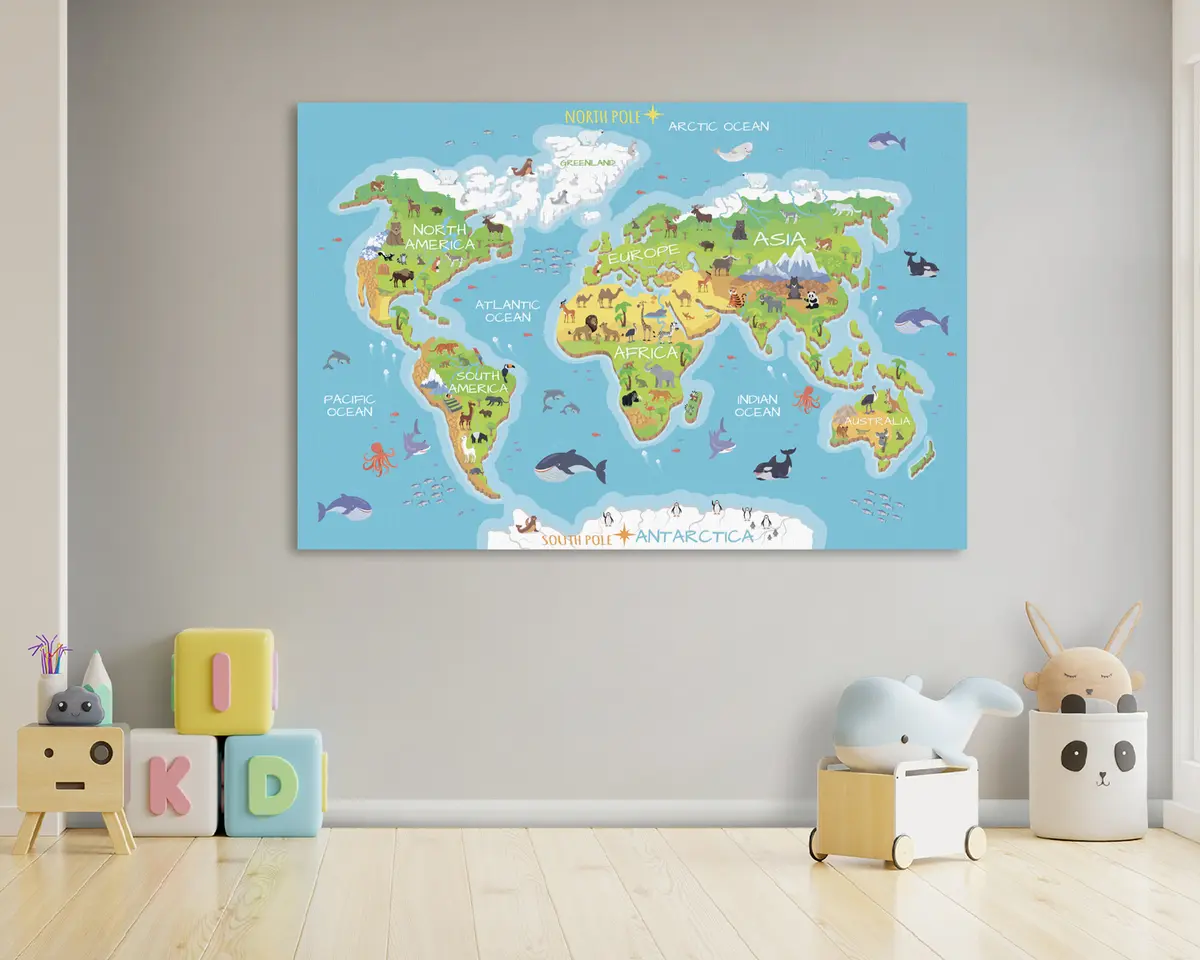 Vászonkép Földrészek térképe állatokkal Nr s32105