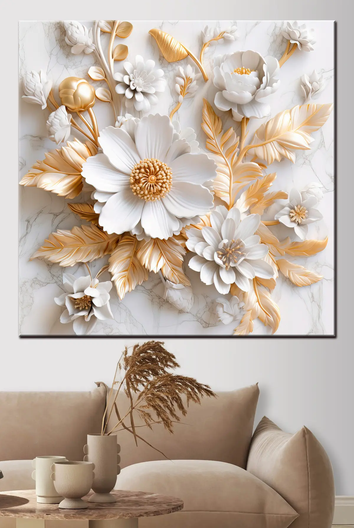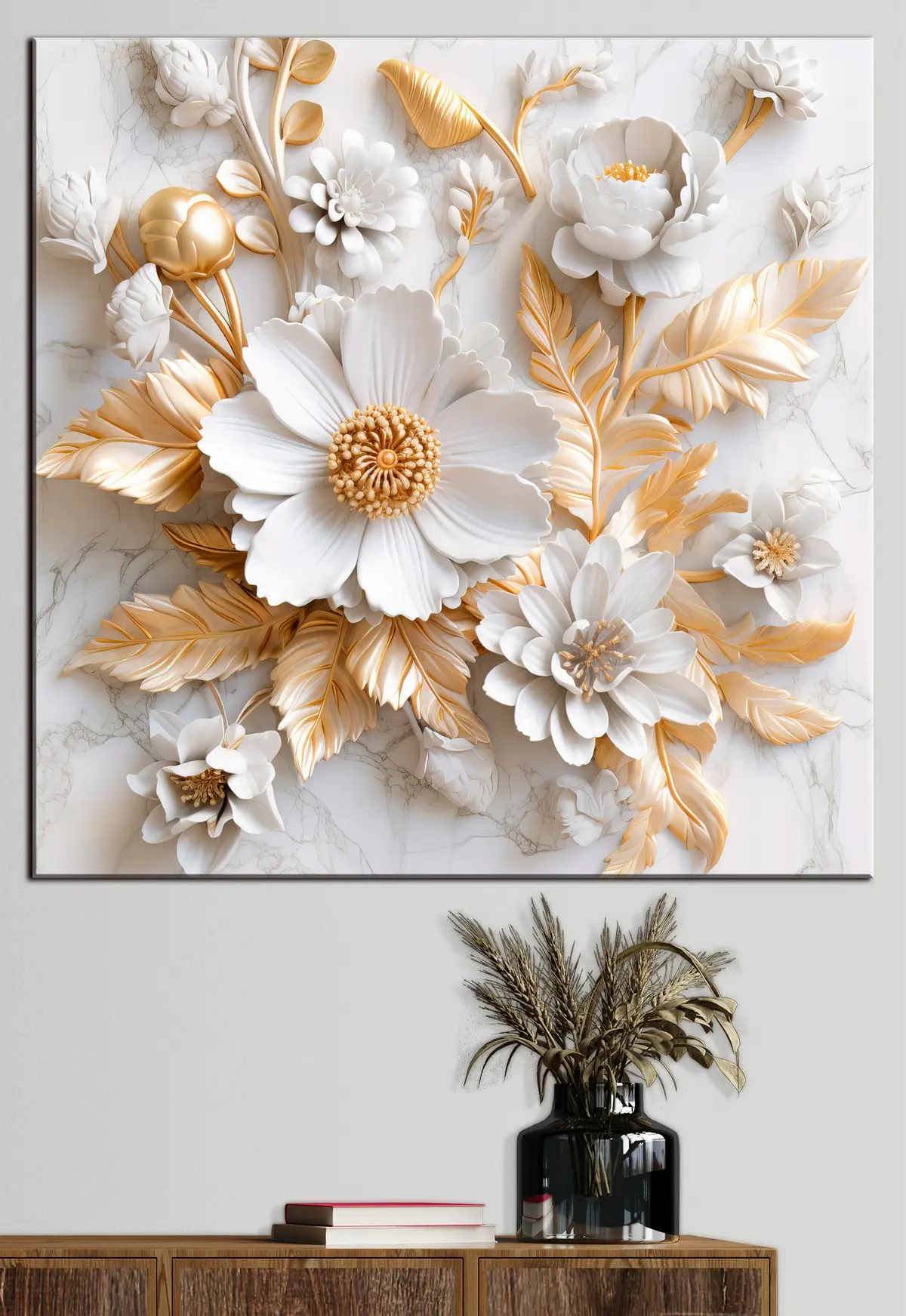 Vászonkép 3D virágok fehér márványon Nr s32778