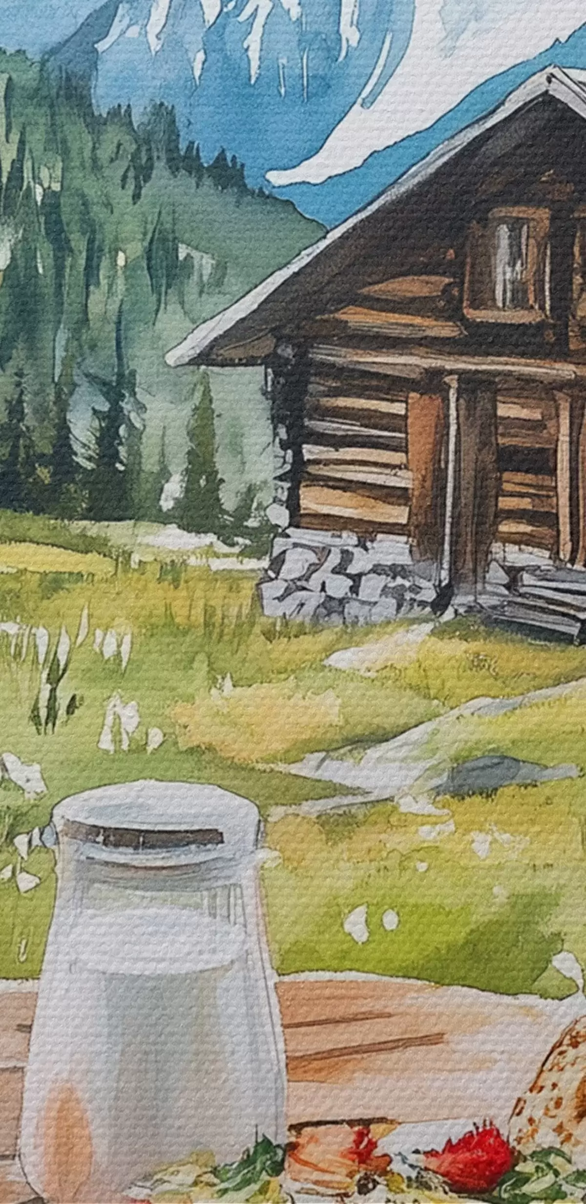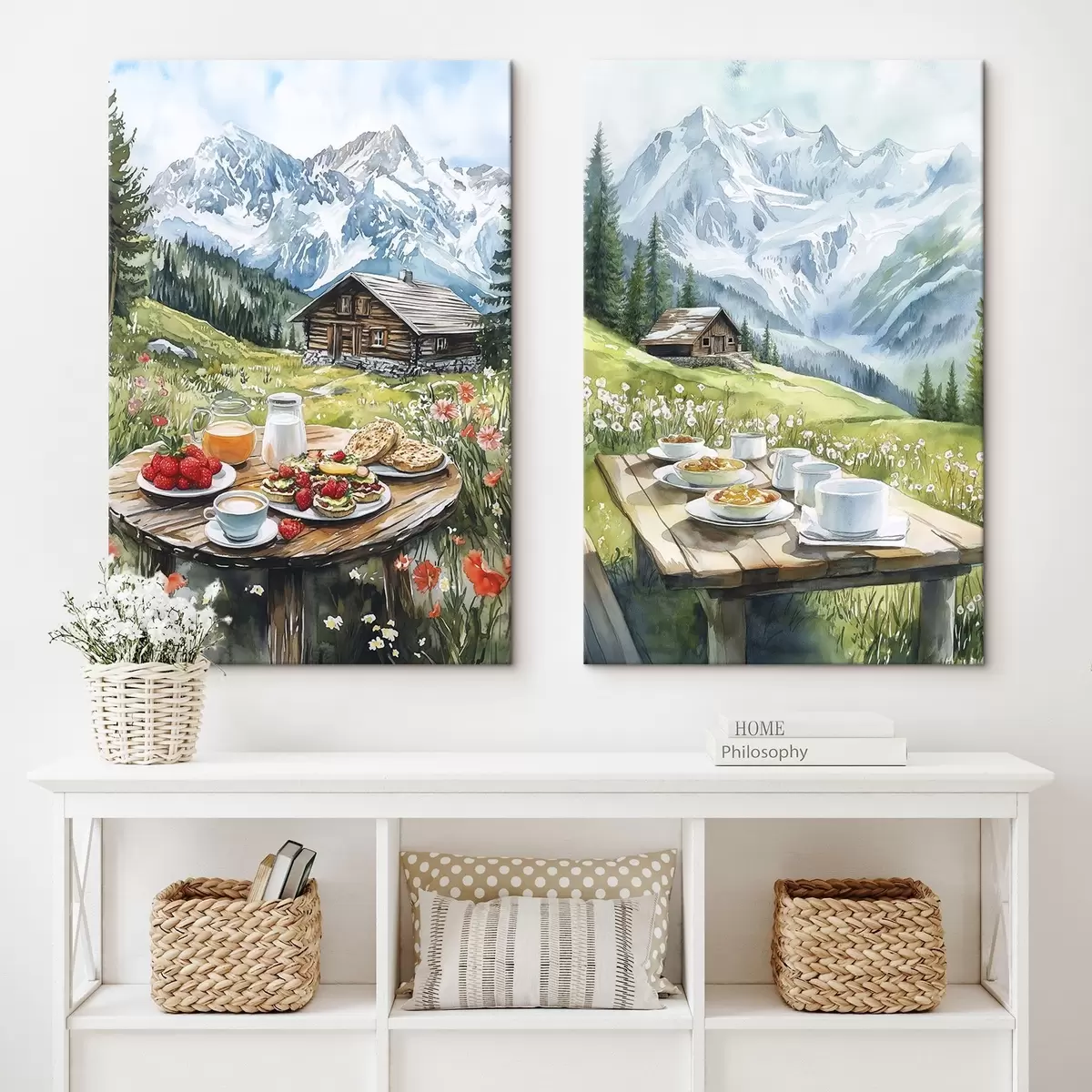 Vászonkép Az Alpok, gyönyörű hegyvidéki táj, esztétikus reggeli, faházak Nr m00403