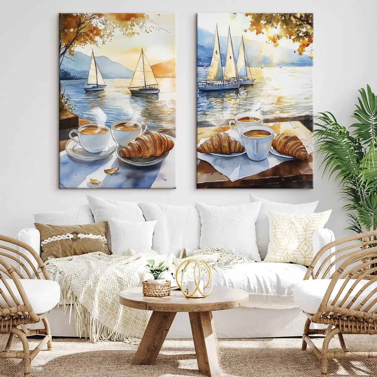 Vászonkép Naplemente a tavon kávéval, vitorlásokkal, természet, utazás Nr m00407