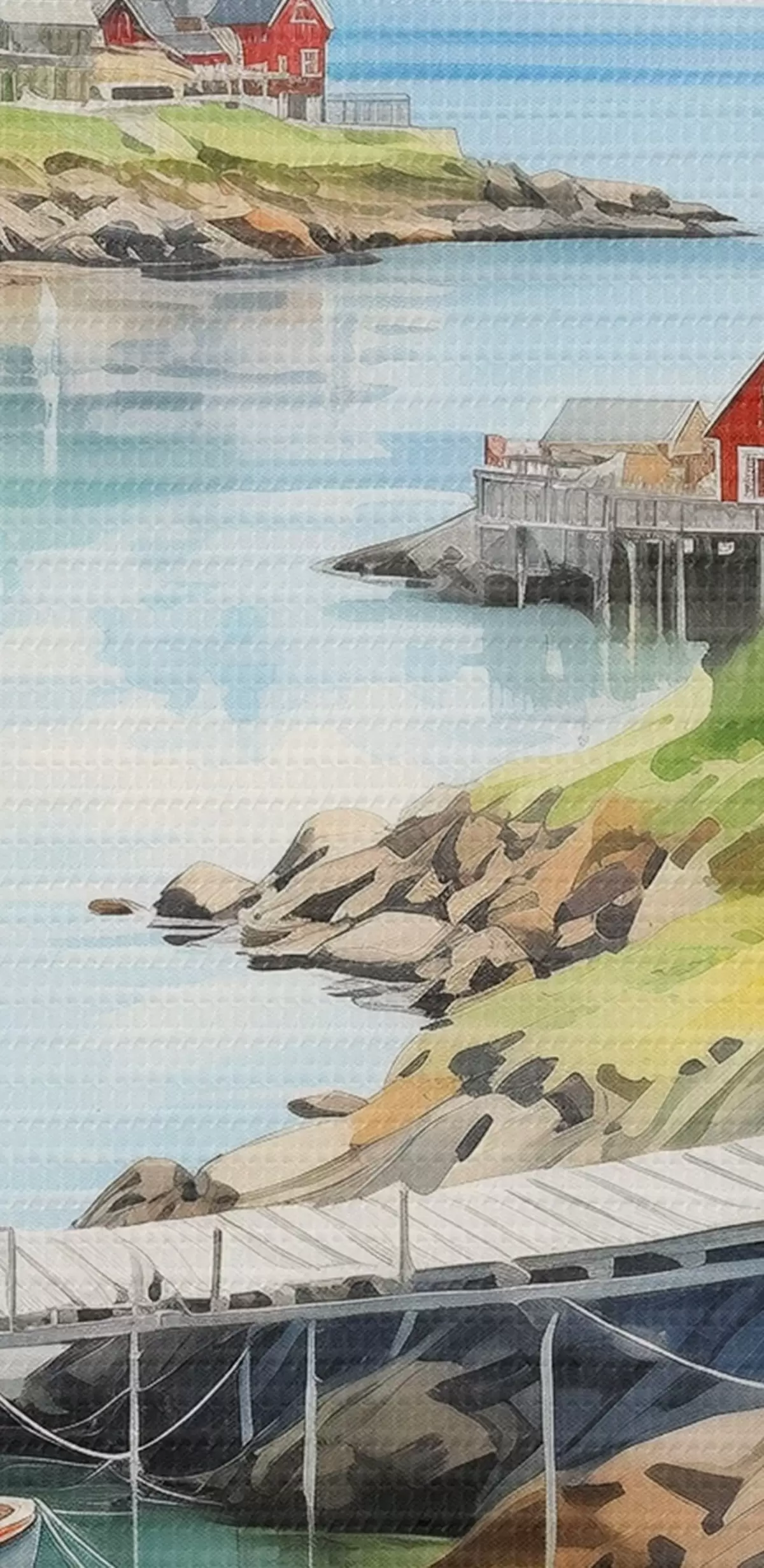 Vászonkép Norvégia természet, Lofoten szigetek, nyári táj, vörös házak, hegyek, csónakok Nr m00421