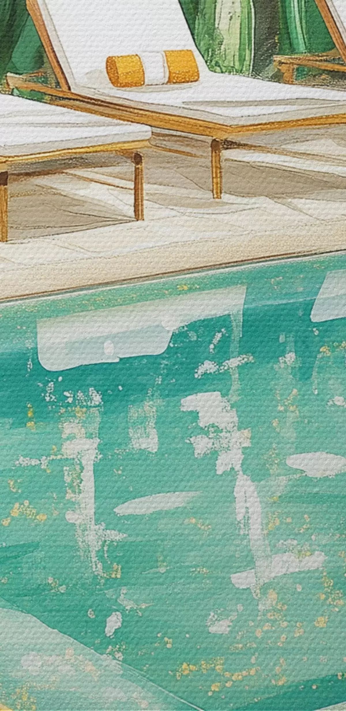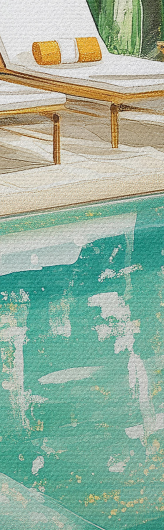Vászonkép Nyári medence, vintage, trópusi erdő, zöld, pálmafák, vízfestmény stílusban Nr m00422