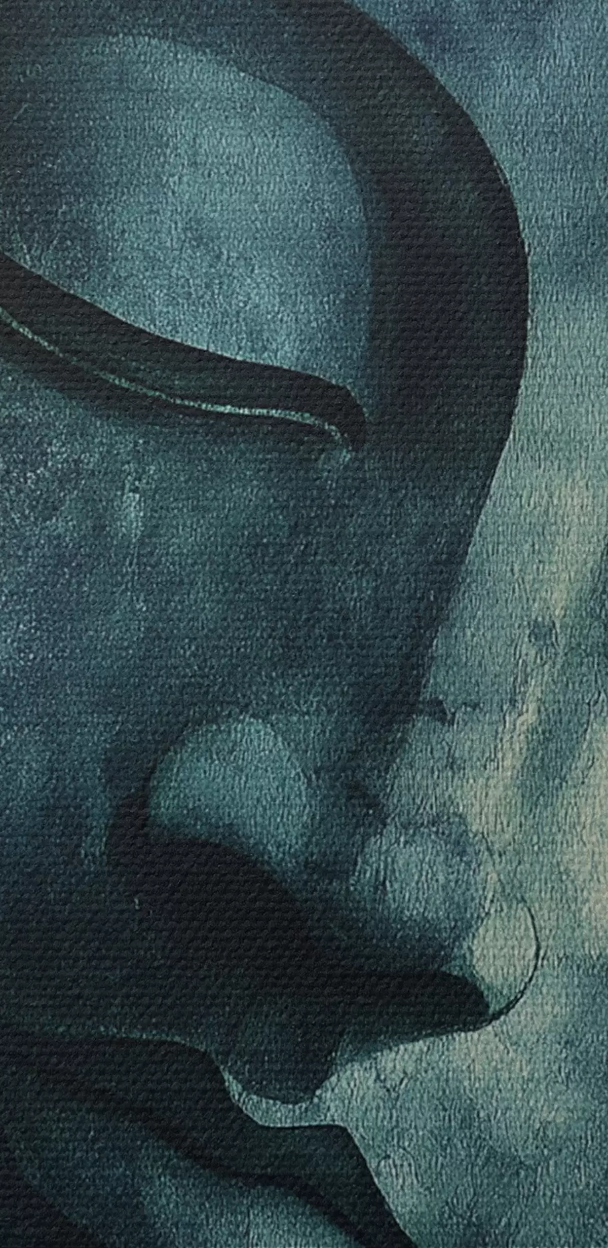 Vászonkép Zöld Buddha trópusi levelekben, akvarell stílusban Nr m00451