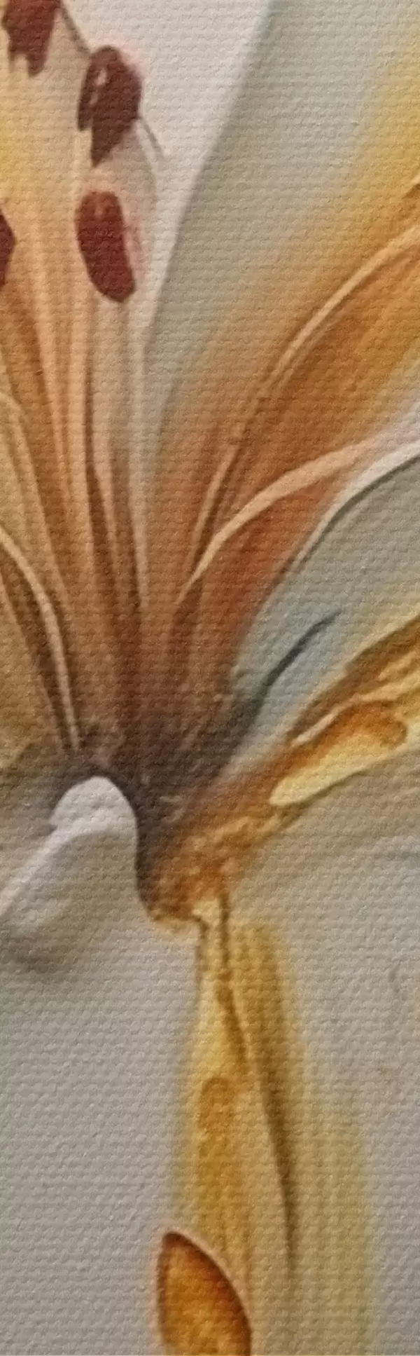 Vászonkép Fehér liliom sárga vonalakkal kék háttéren Nr m00497