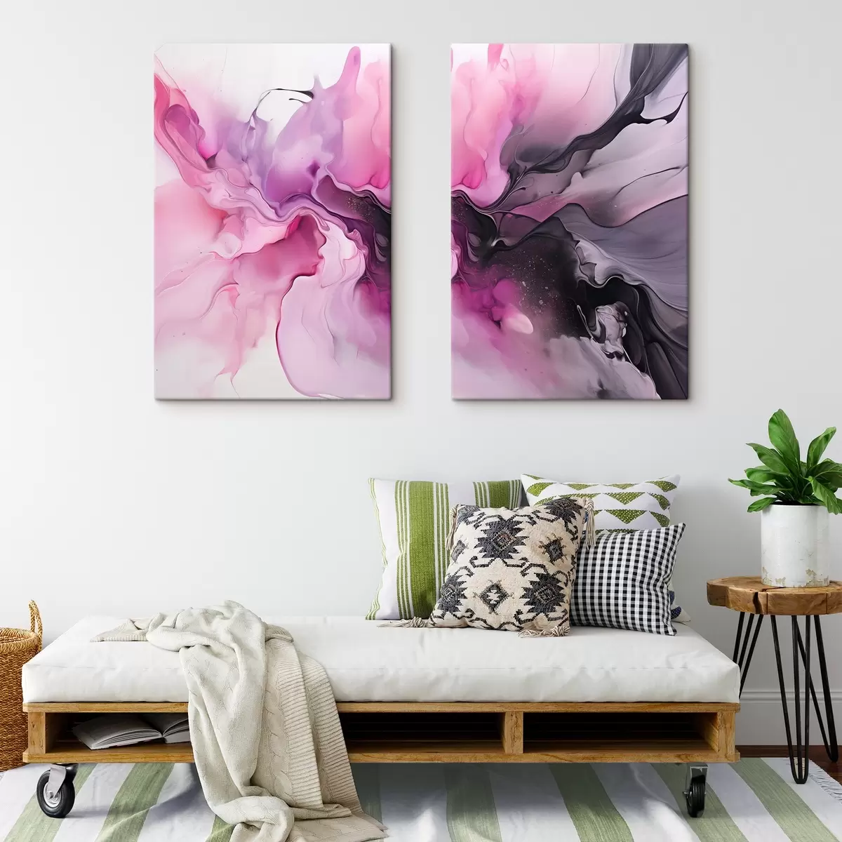 Vászonkép Absztrakt örvények rózsaszín, lila és fekete keverednek össze egy folyékony, szerves kompozícióban, ami a mozgás érzetét kelti Nr m00532