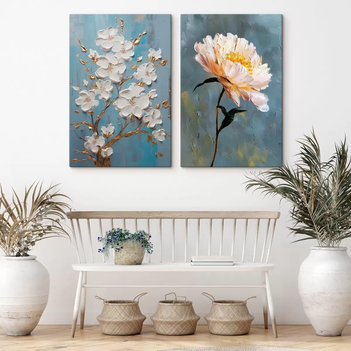 Vászonkép Virágzó ág és bazsarózsa: relief kompozíció Nr m00637