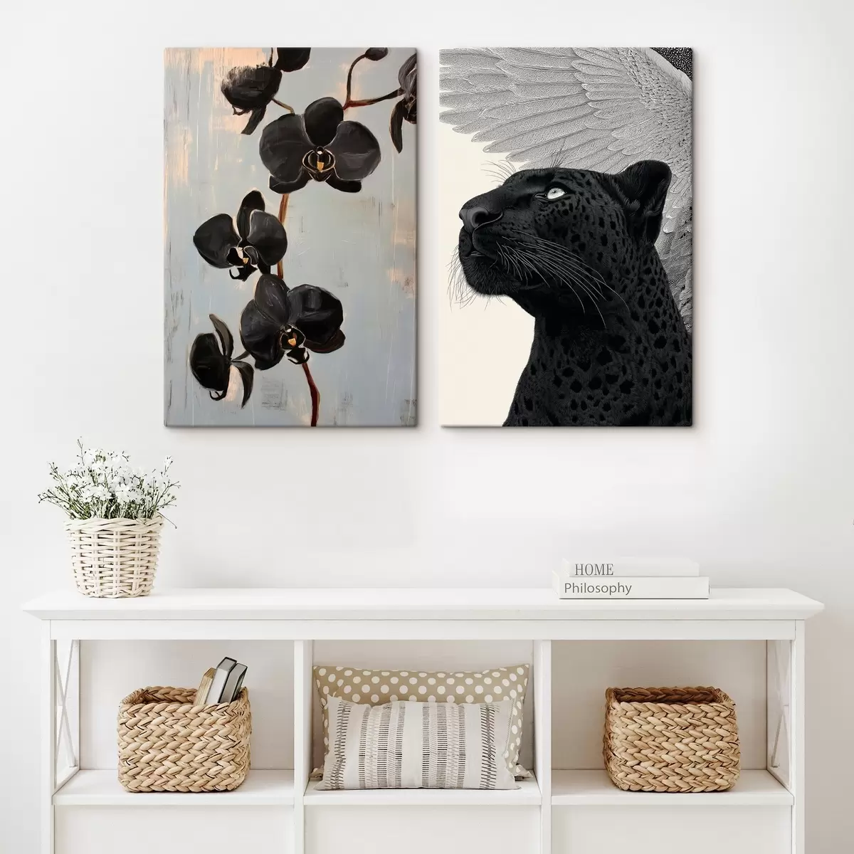Vászonkép Sötét orchideák és szárnyas állat: művészi kompozíció Nr m00640