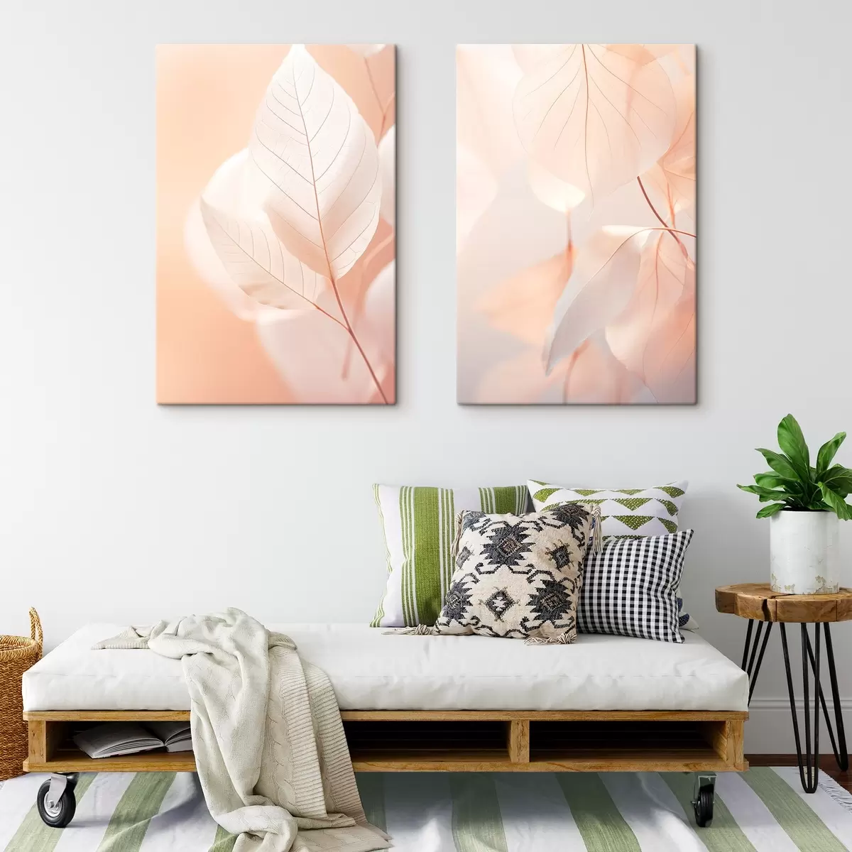 Vászonkép Közelkép áttetsző levelek finom erezettel, lágy barack és fehér színpaletta, elmosódott háttérrel Nr m00647