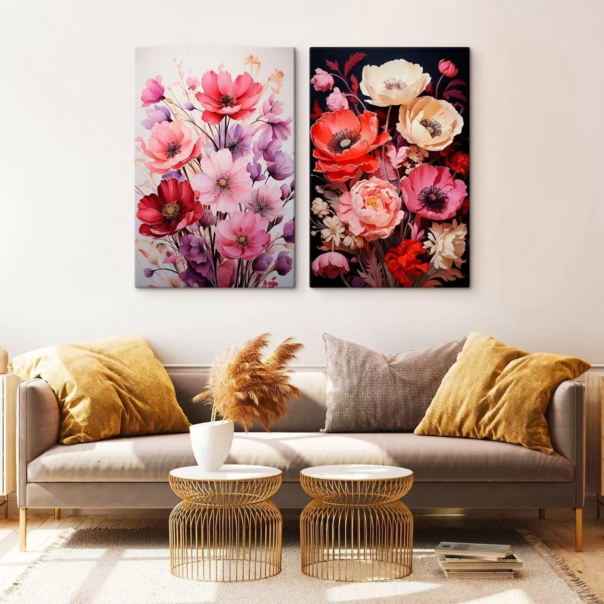 Vászonkép Pasztell és gazdag árnyalatokban pompázó pipacscsokrok Nr m00661