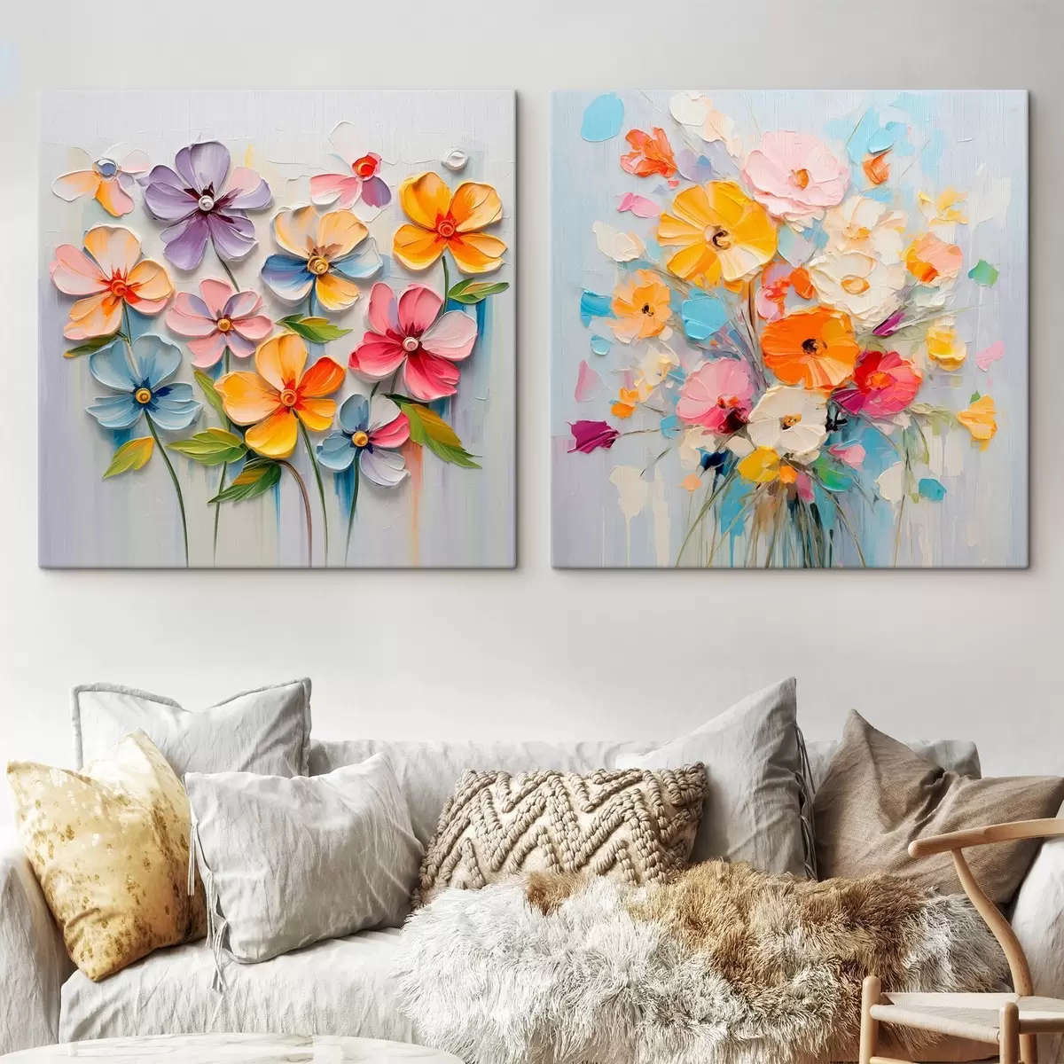 Vászonkép Absztrakt kompozíciók fényes virágok készült impasto technikával készült Nr m00662