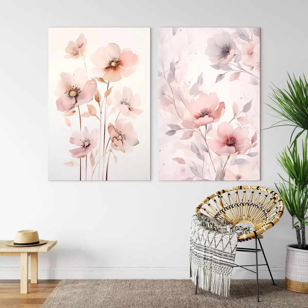 Vászonkép Vízfesték rózsaszín virágok vékony száron Nr m00690