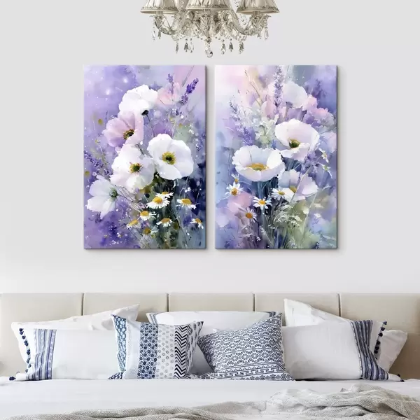 Vászonkép akvarell csokor lila és fehér árnyalatokban Nr m00704