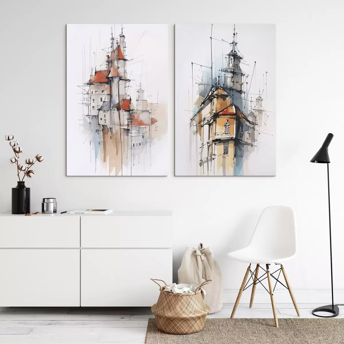 Vászonkép Házak utánzata vázlat és akvarell Nr m00725
