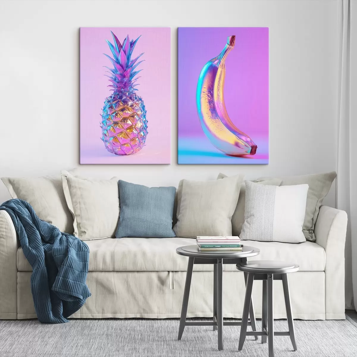 Vászonkép fényes, csillogó ananász és banán pop art stílusban Nr m00737