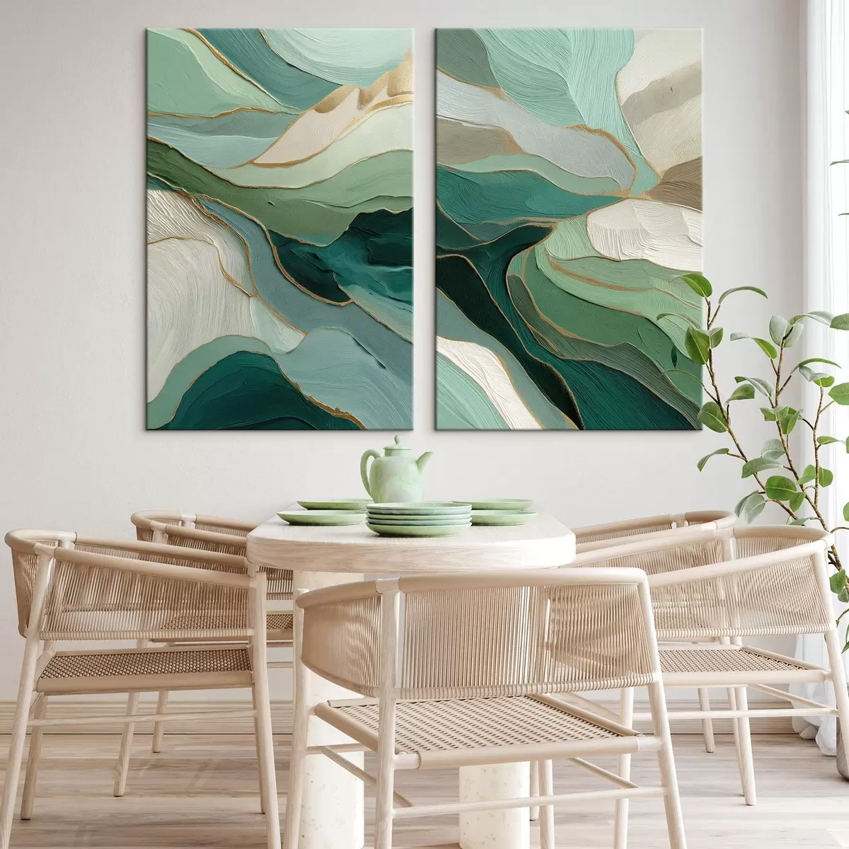 Vászonkép Smaragdszínű réteges absztrakció sárga kontúrral Nr m00766