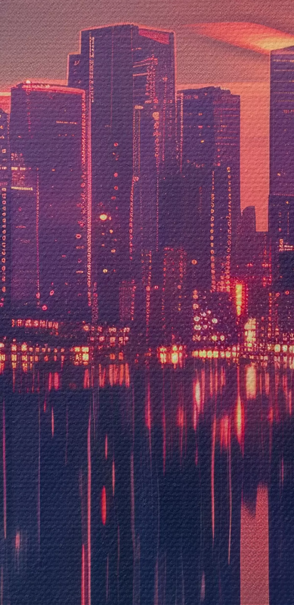 Vászonkép Romantikus naplemente egy modern város háttérében Nr m00784
