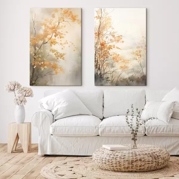 Vászonkép Őszi fák narancssárga levelekkel és ágakkal, lágy akvarell stílusban, finom ecsetvonásokkal Nr m00826