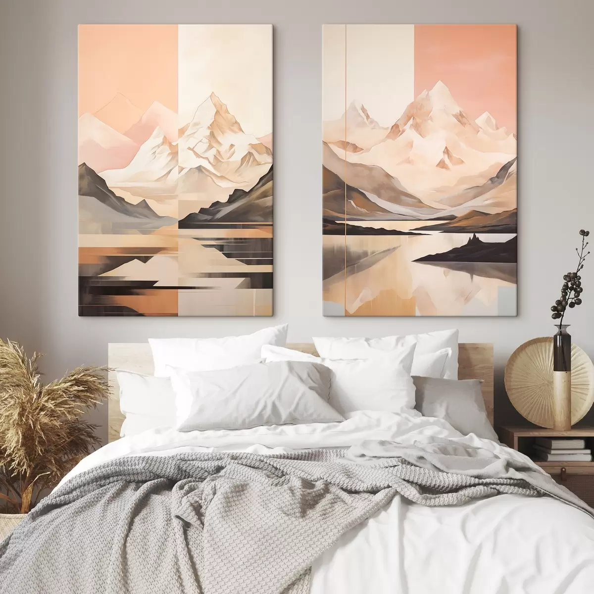 Vászonkép Absztrakt táj hegyekkel és tóval, pasztell színekkel, minimalista stílusban Nr m00830