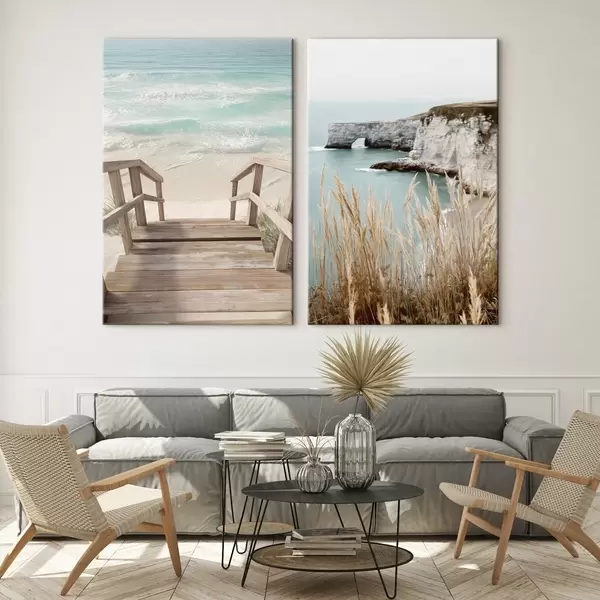 Vászonkép Parti sziklák és száraz fű a türkizkék tenger partján Nr m00875