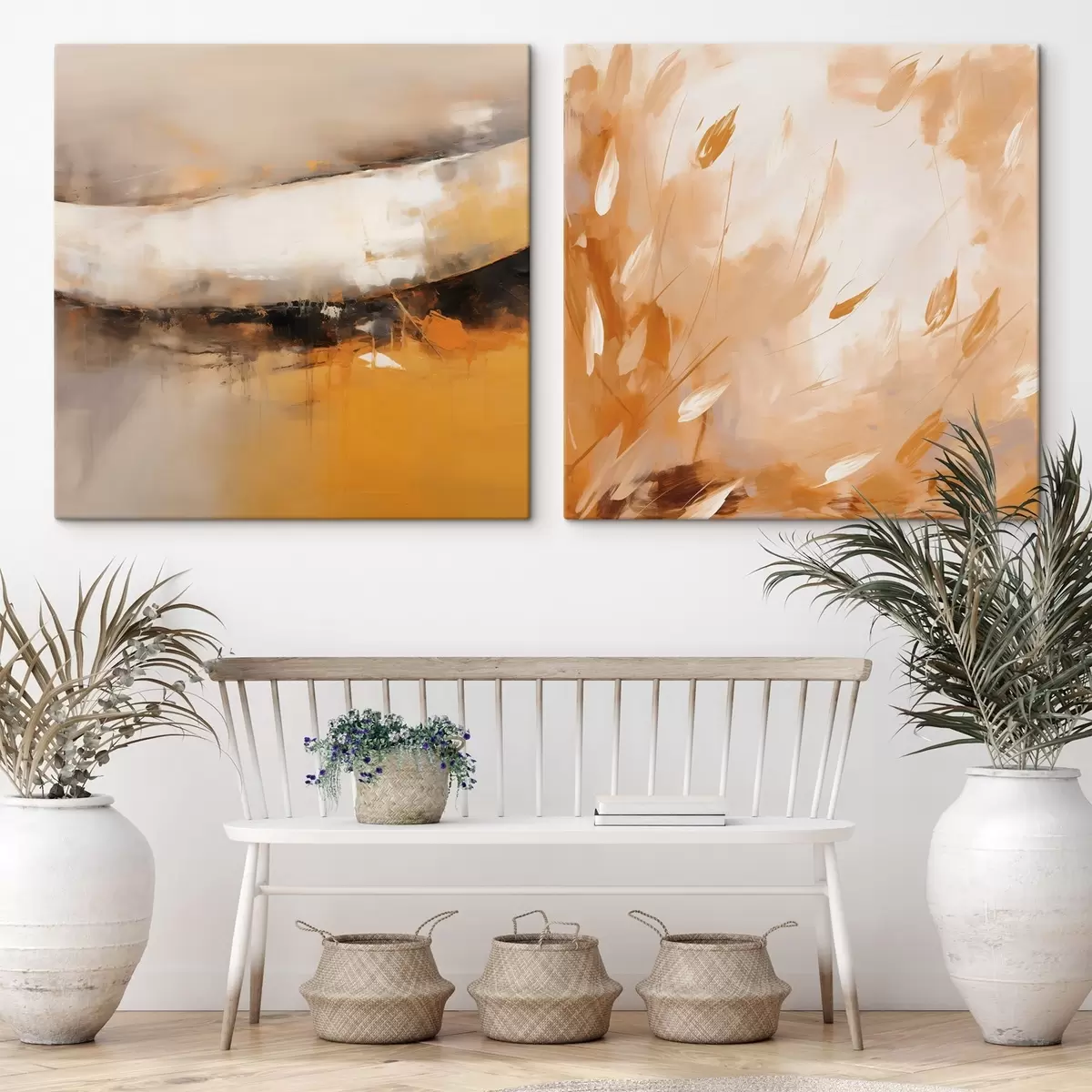 Vászonkép Absztrakt diptichon olajfestmény stílusban, sárga-narancssárga és fekete tónusokkal Nr m00897