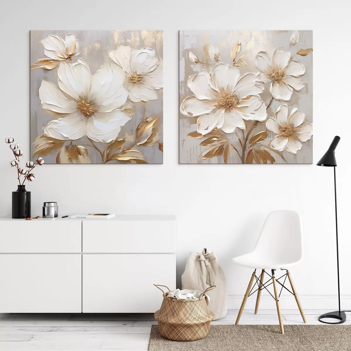 Vászonkép Diptych nagy virágokkal, világos, meleg színekben Nr m00927