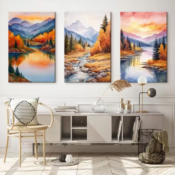 Vászonkép Őszi hegyvidéki táj meleg naplemente árnyalatokban Nr m00930