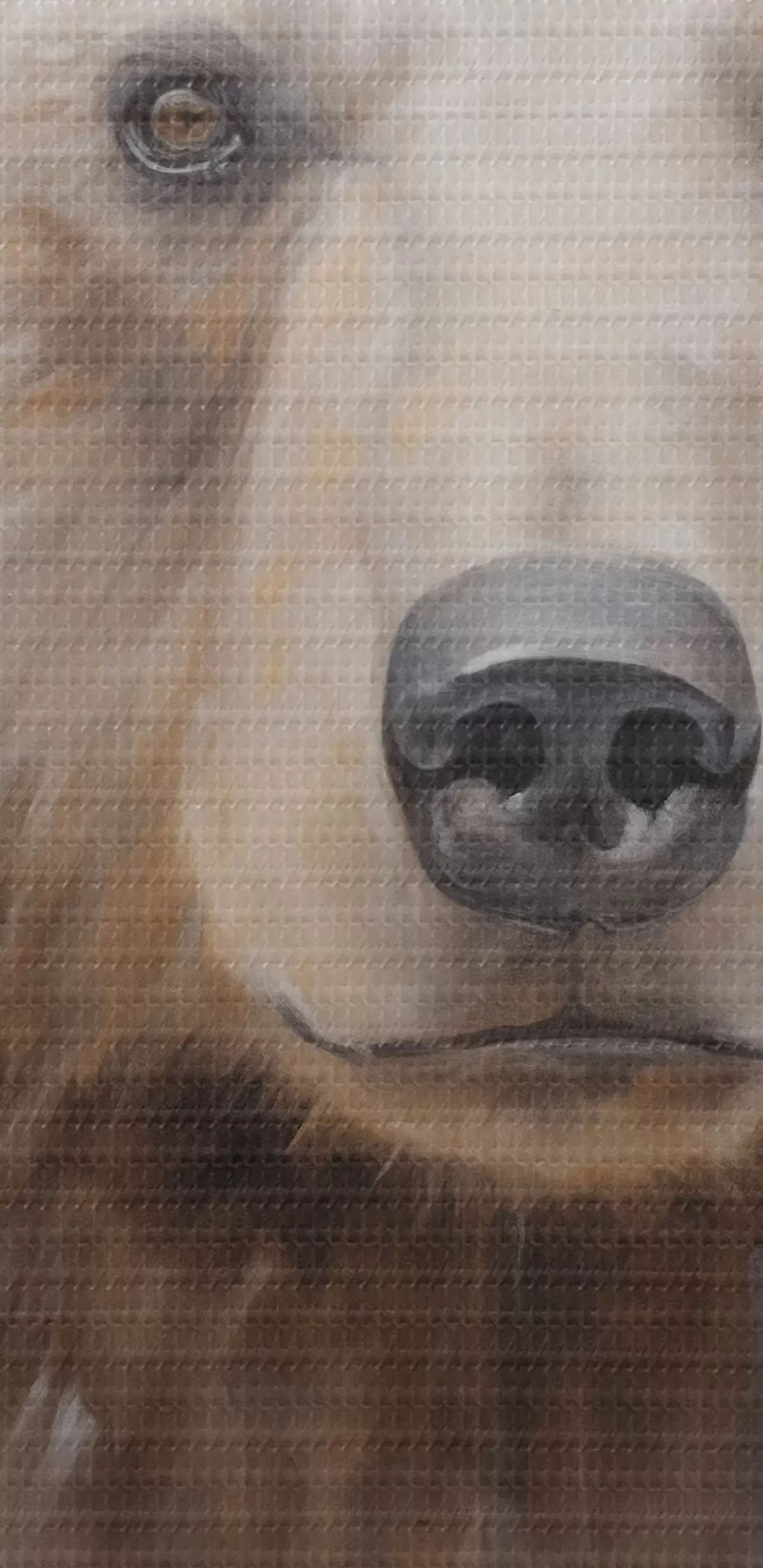 Ahhoz, hogy a vásznat a feszítőrúdra feszítsük anélkül, hogy a kép megsérülne, tükrözött képet használunk.