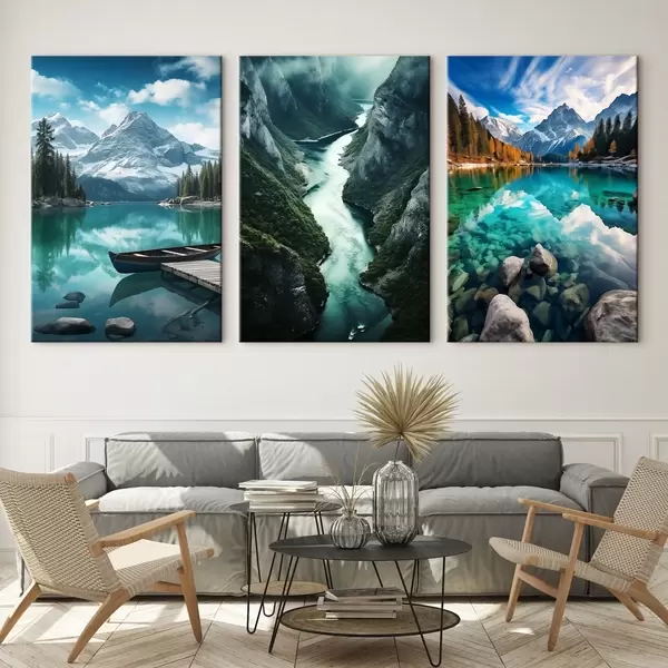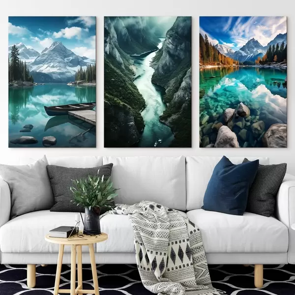 Vászonkép Alpesi tavak és fjordok látványa hűvös türkizkék árnyalatokban Nr m00961