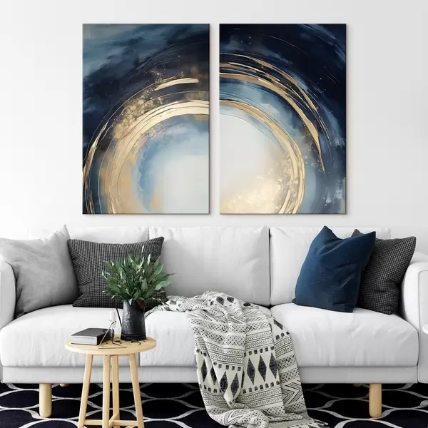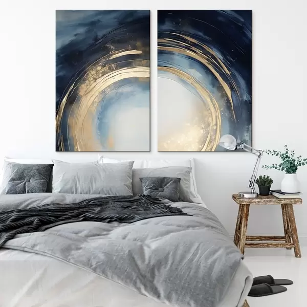 Vászonkép Éjfélkék kör alakú, fémes ívekkel Nr m00969