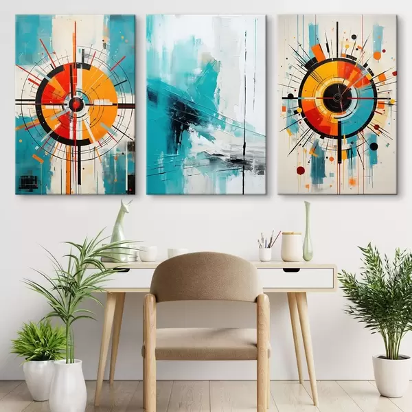 Vászonkép Radiális absztrakt, türkiz és narancssárga színű robbanásokkal Nr m00973