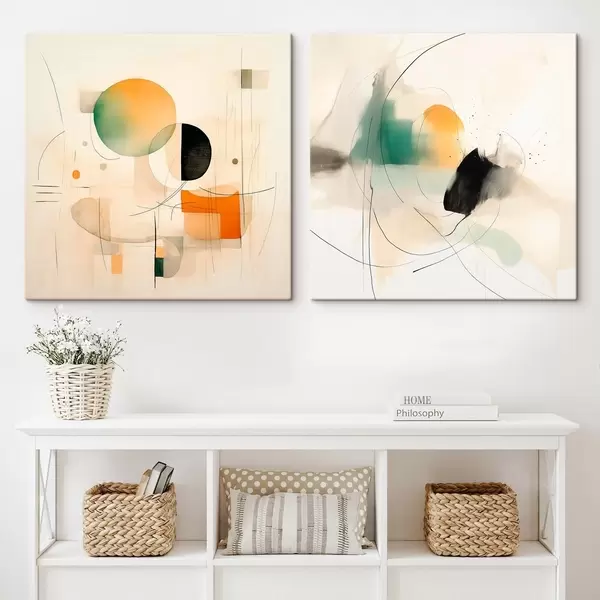 Vászonkép Absztrakt diptichon kör alakú formákkal és dinamikus vonalakkal Nr m00981