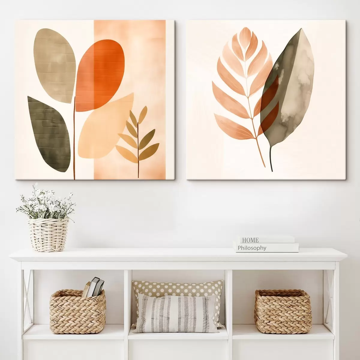 Vászonkép Pasztell színű, botanikai motívumokkal díszített diptichon Nr m00983