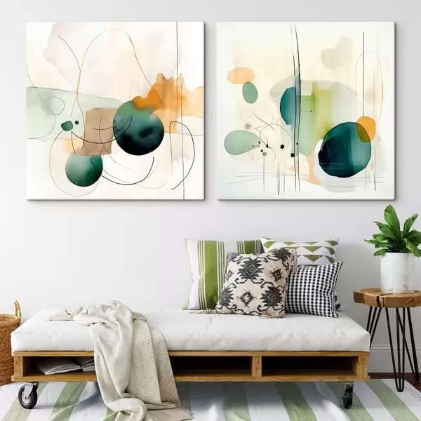 Vászonkép Kétrészes absztrakt kompozíció lágy színfoltokkal Nr m00985