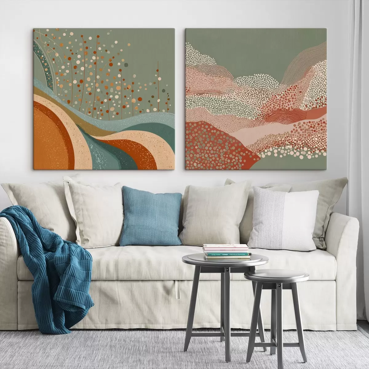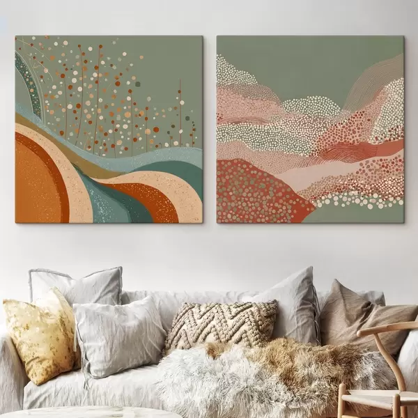 Vászonkép Kétrészes absztrakt táj pontokkal és hullámzó elemekkel Nr m00987