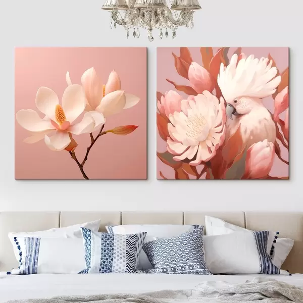 Vászonkép Virágkompozíció madárral, művészi illusztrációs stílusban Nr m00994