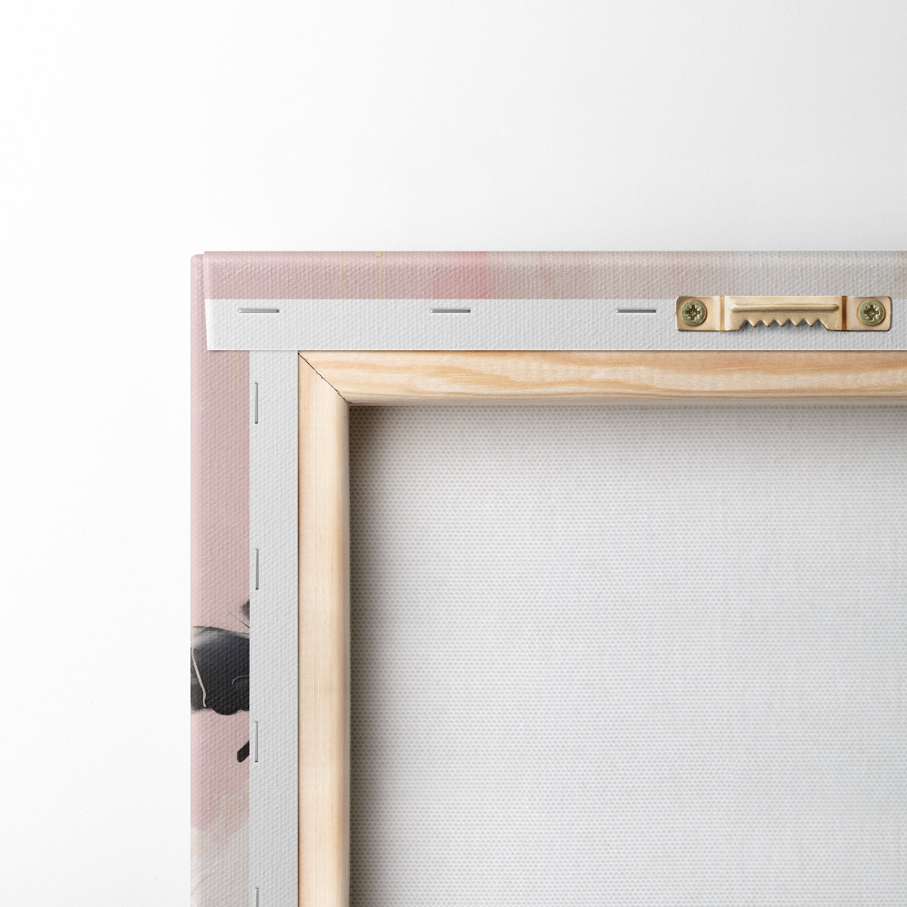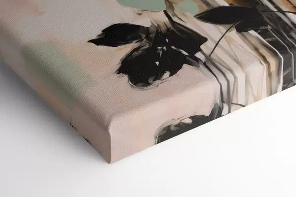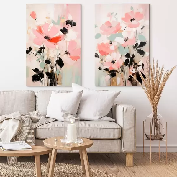 Vászonkép Rózsaszín és fekete virágok levelekkel, lágy pasztell színek, absztrakt virágkompozíció, minimalista művészet Nr m01004