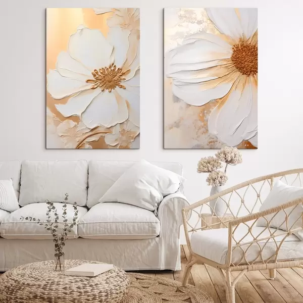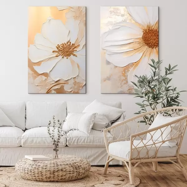 Vászonkép Finom szirmú fehér virág, texturált absztrakt háttér, elegáns, dekoratív művészet Nr m01006