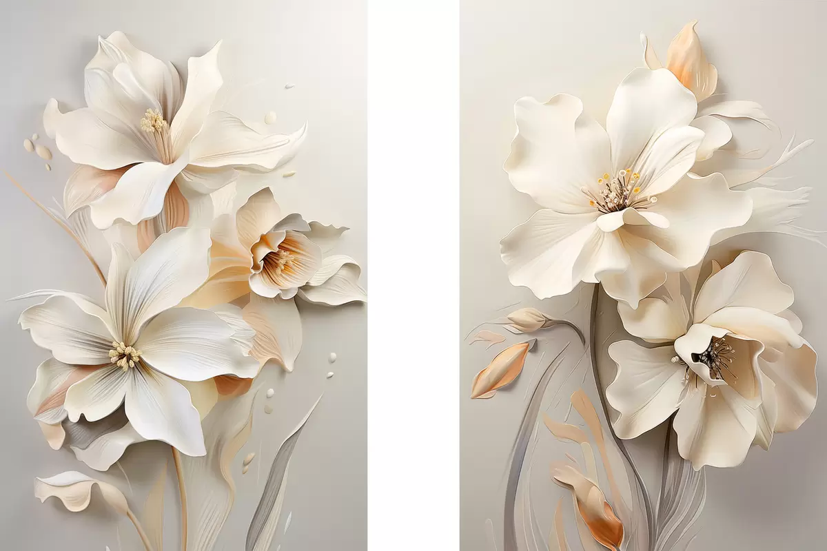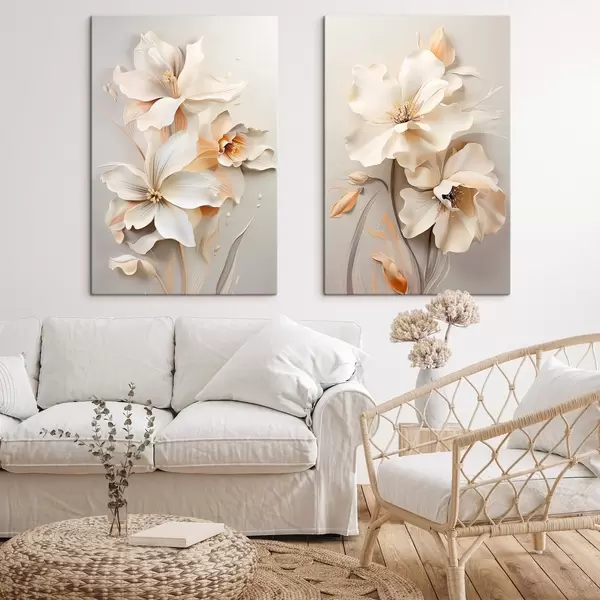 Vászonkép Fehér virágok, lágy árnyékú szirmok, világos bézs háttér, elegáns kompozíció, minimalista stílus Nr m01010