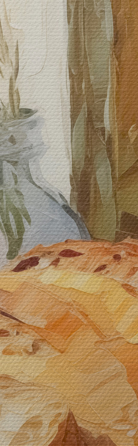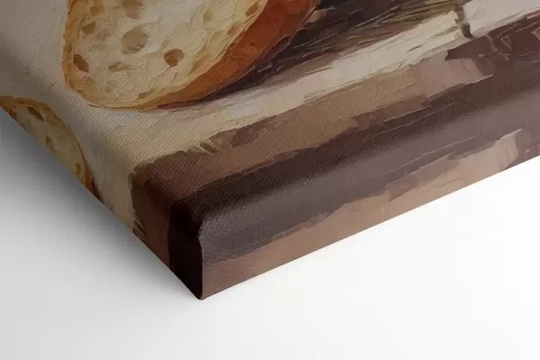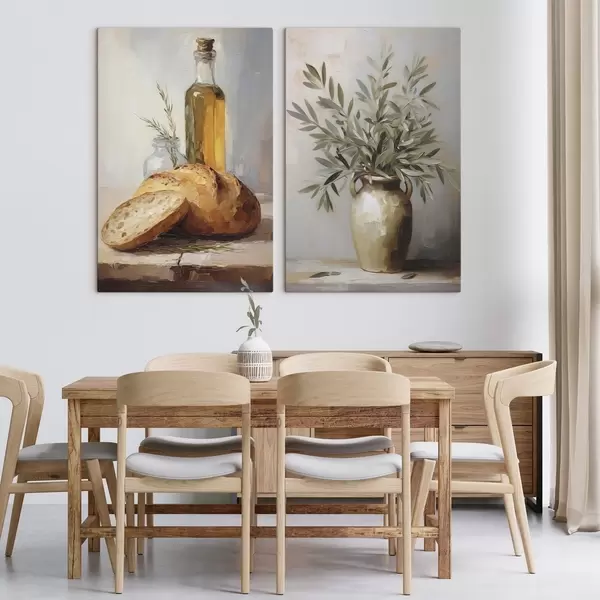 Vászonkép Olajágak vázában, kenyér és egy üveg olaj, festménymásolat Nr m01035