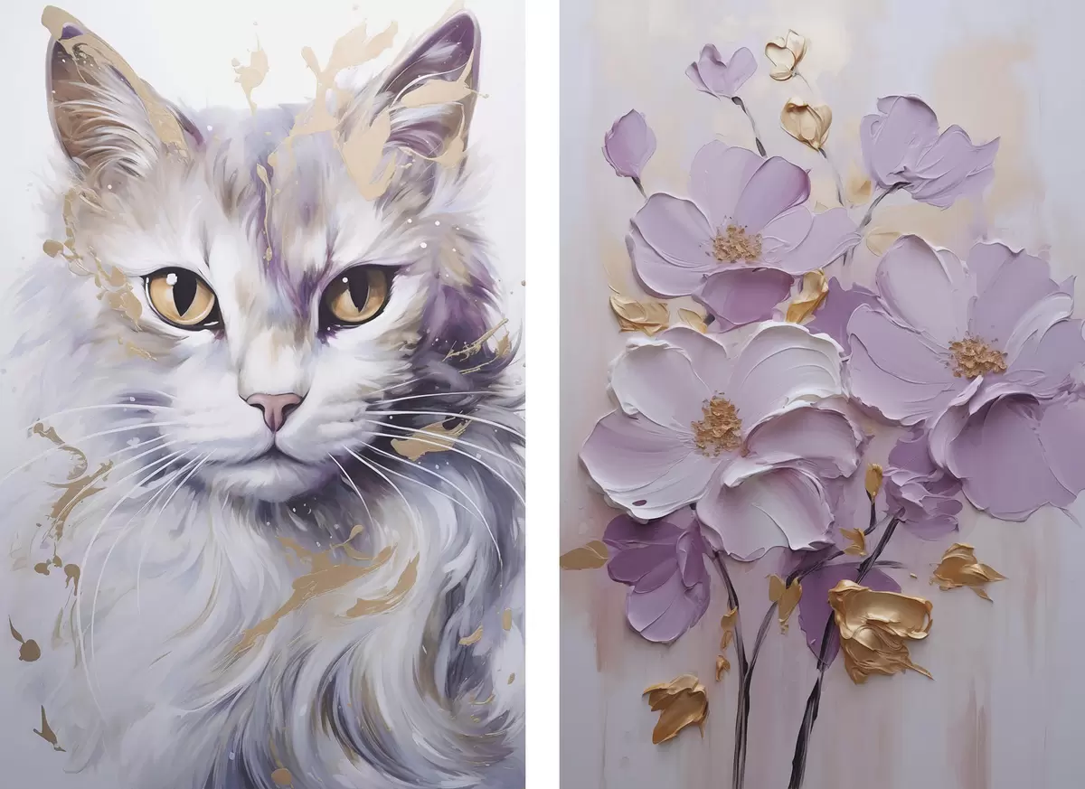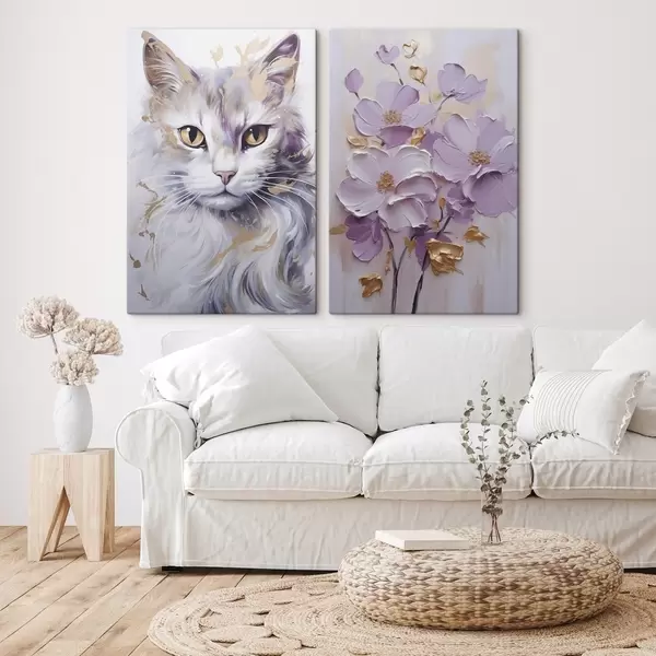 Vászonkép Absztrakt virágok és egy macska Nr m01056