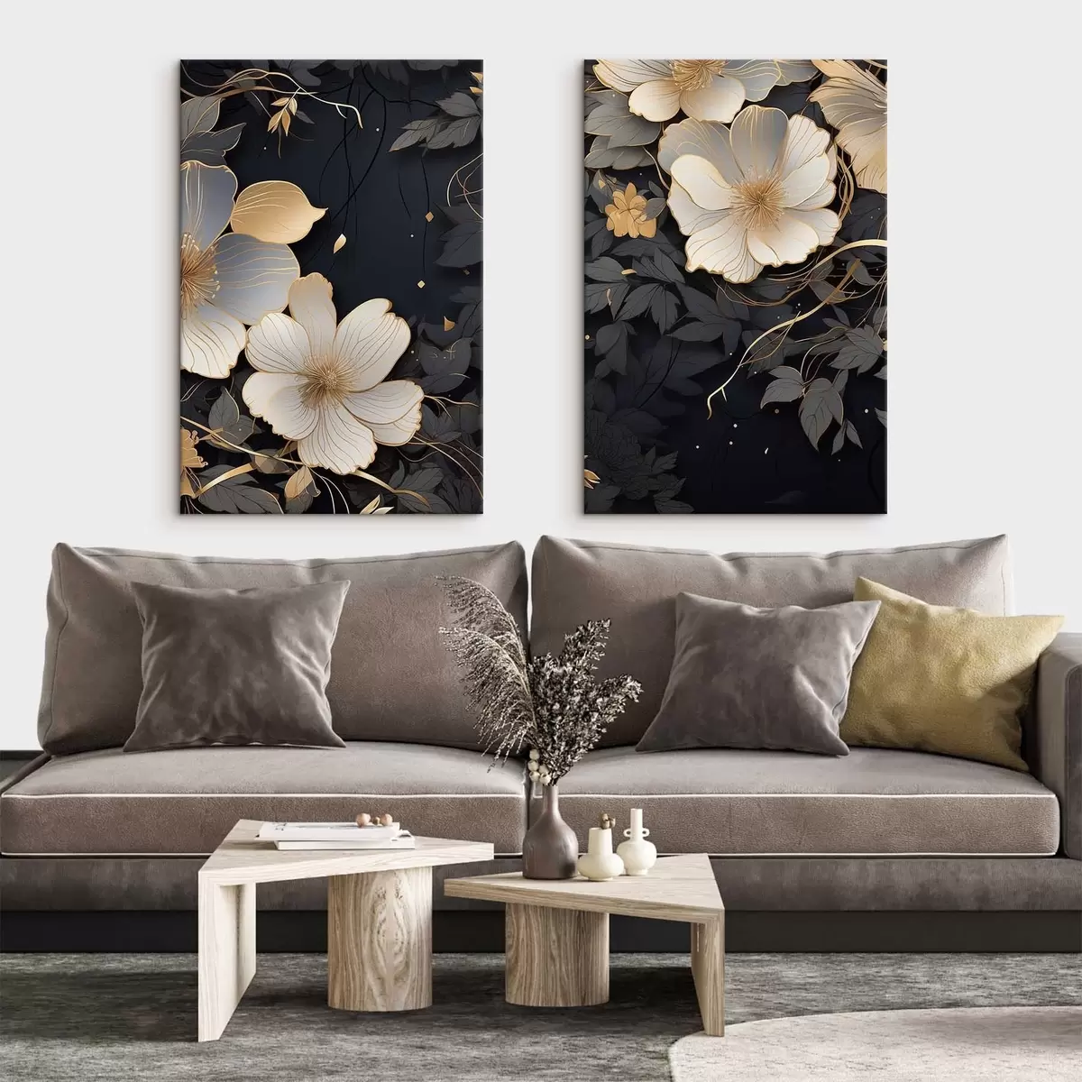 Vászonkép Nagy absztrakt virágok sötét háttér előtt Nr m01066