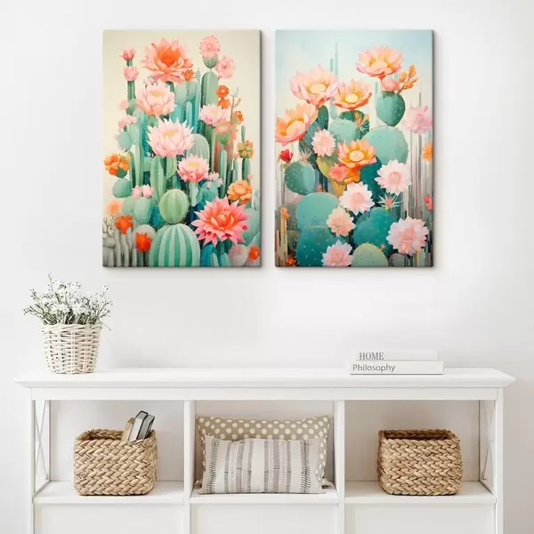 Vászonkép Nagy virágú kaktuszok, pasztell színvilág és nyugalom érzése Nr m01086