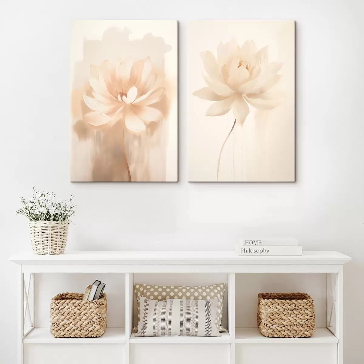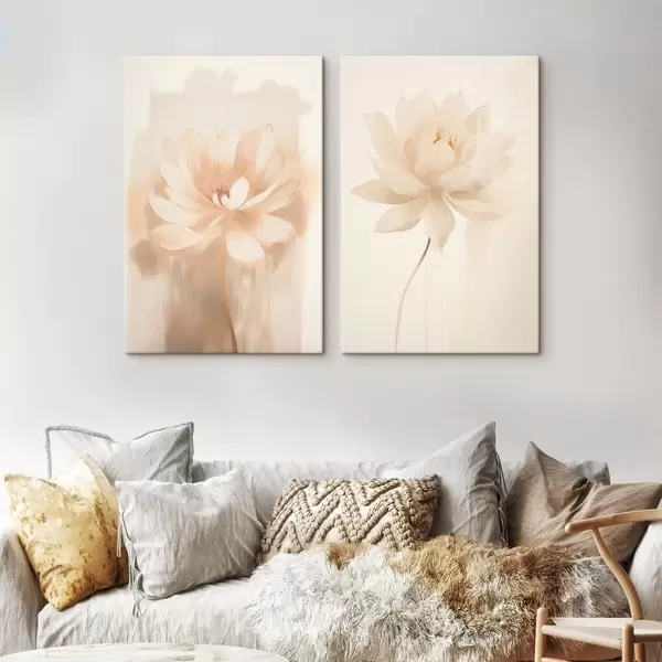 Vászonkép Virágkompozíció meleg bézs árnyalatokban, könnyed ecsetvonásokkal és légies háttérrel Nr m01087