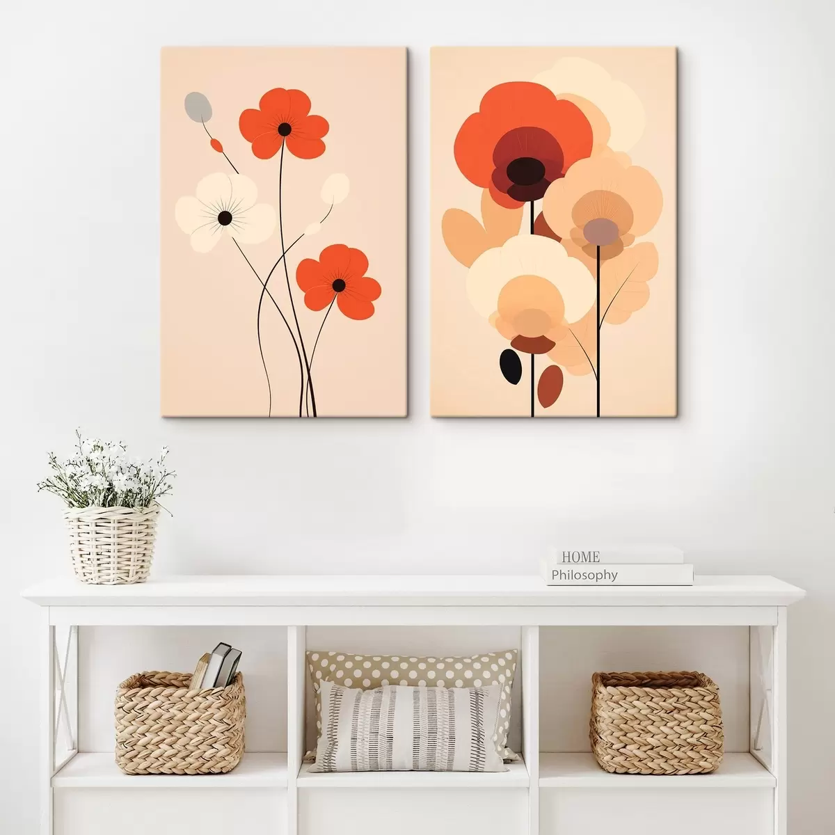 Vászonkép Minimalista virágos diptichon meleg bézs-korall árnyalatokban, grafikus vonalakkal Nr m01090