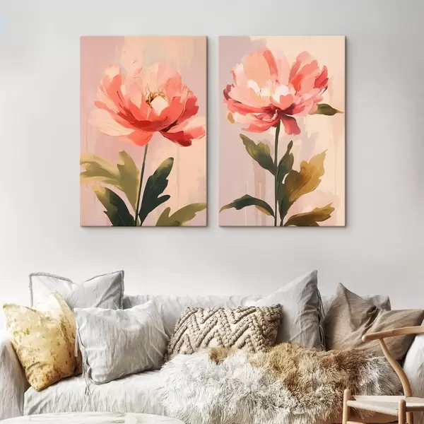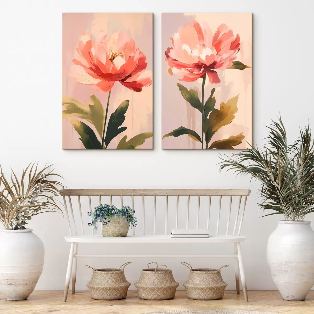 Vászonkép Magas szárú, meleg rózsaszín árnyalatú pasztell pünkösdi rózsák Nr m01093