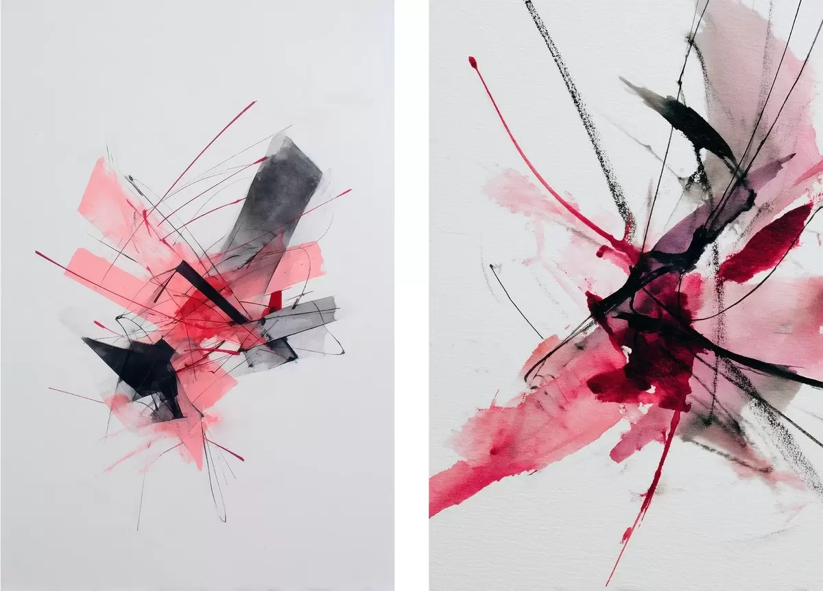Vászonkép Modern absztrakt művészet dinamikus ecsetvonásokkal és félig átlátszó festékrétegekkel Nr m01094