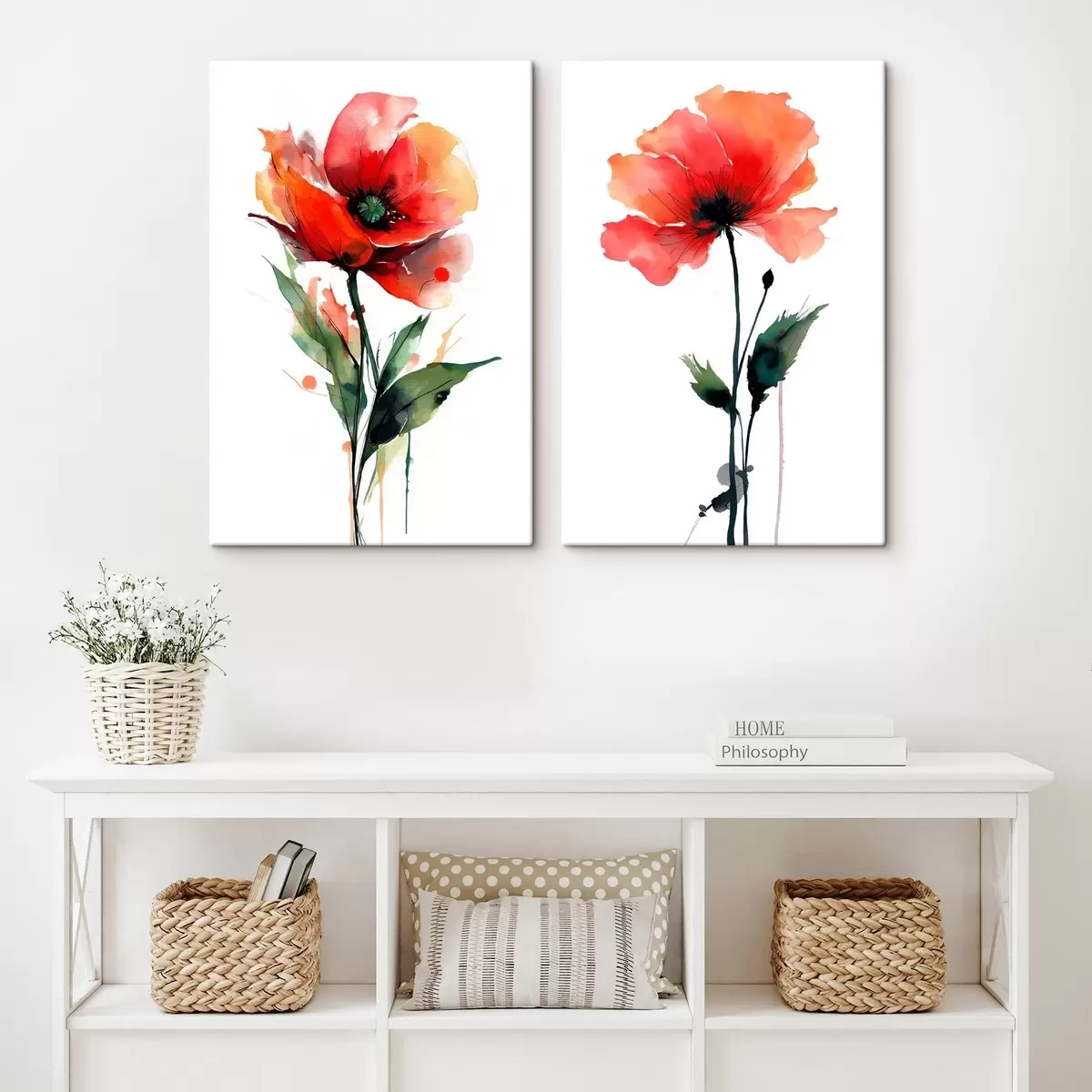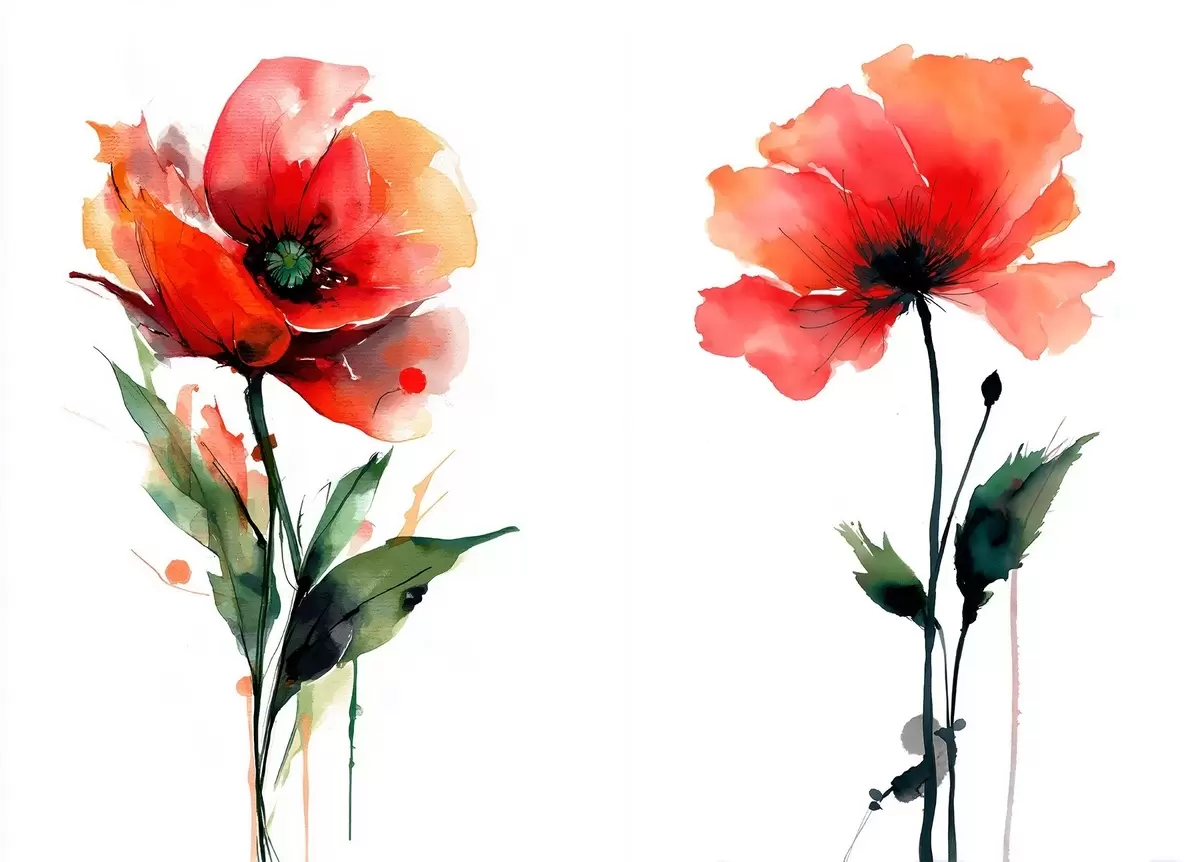Vászonkép Vízfesték stílusú kompozíció fehér háttérrel, vörös pipacsokkal Nr m01100