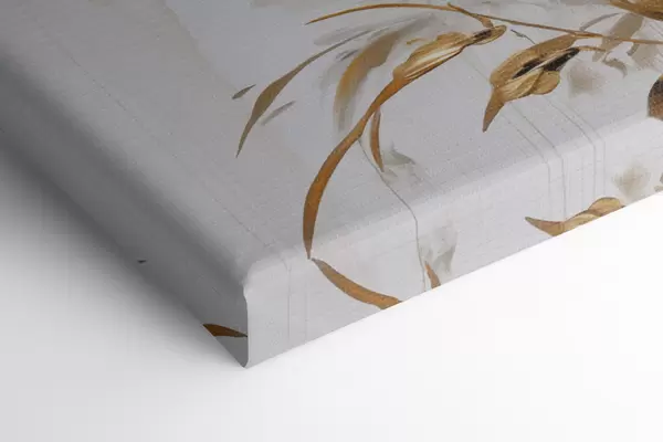Vászonkép Texturált sárga virágok és levelek fehér háttér előtt, finom ecsetvonásokkal Nr m01116
