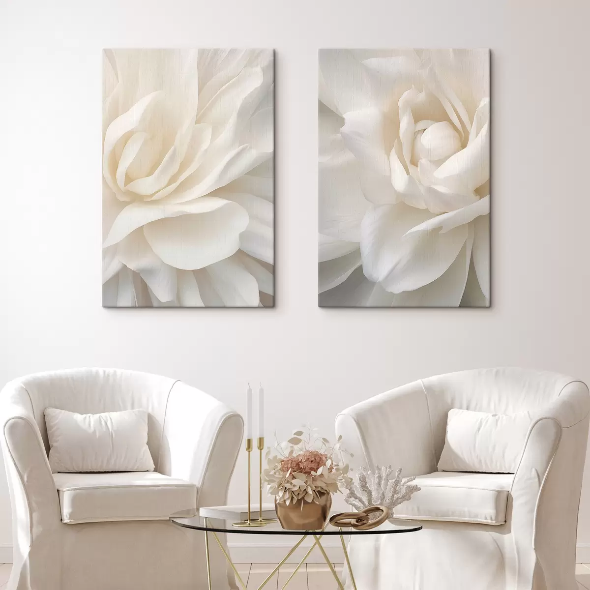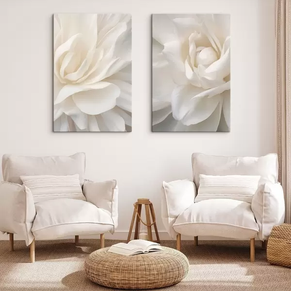 Vászonkép Absztrakt fehér virág finom, réteges szirmokkal, minimalista művészet Nr m01120